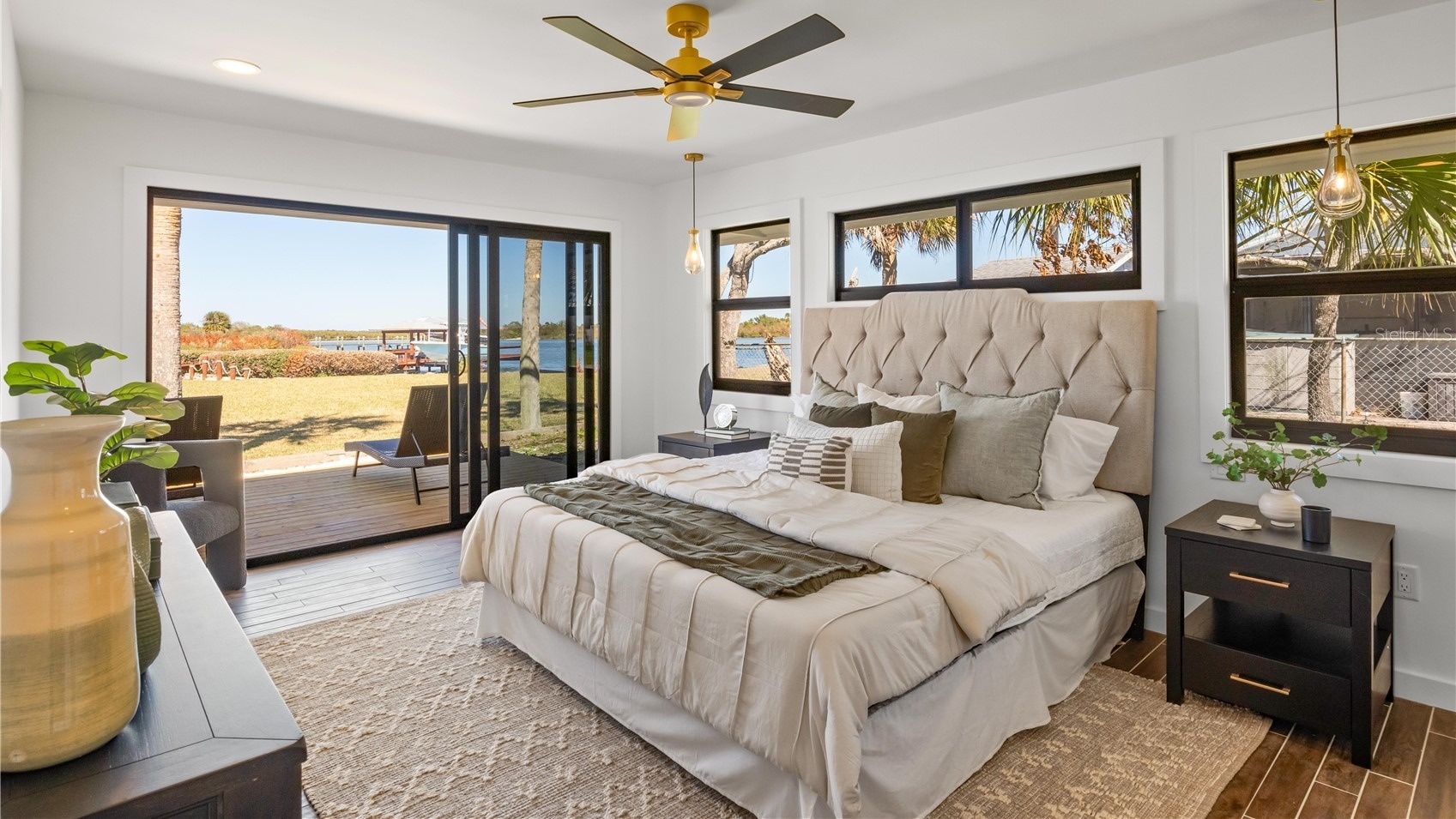 Completely renovated with high-end finishes throughout, this 2-bedroom, 2-bath home at 203 Parkwood Lane offers front-row riv